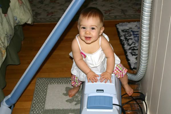 Hailey has found a new "toy" to play with at Dooda and Nana's house! Nana said she was ironing, turned around and Hailey was riding the new vacuum!