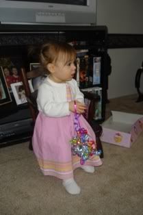 She is also the only 1 year old I know who walks around with a little purse. This winter I bought her a little purse at the GAP that had a little doggie in it because she LOVES dogs. Well, now she has a new love - purses. The dog is in the toy bin, but the purse goes everywhere with her. She calls it her bubby ... not sure where that name came from, but if she can't find it she will run around the house yelling "bubby", "where's the bubby"?