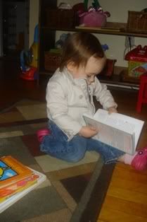 In the picture below she is reading mommies potty training guide - I hope she learns alot from reading that book :-)