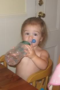 Hailey is in love with the new "large" Poland Spring water bottles. We figured this out the other day when my mom and I were shopping at the mall. She is not such a fan of shopping at this point in her life, so we were trying to get out of the mall as soon as possible, when we passed the cookie counter. Hailey noticed and asked for a cookie so we bought one and a water. Needless to say she loved the cookie, but there was something about the water and the new sip spout she loves. Sure enough she sat still, happily sipping and playing with that water for the rest of our trip. I think these will become a staple for our future shopping expeditions!